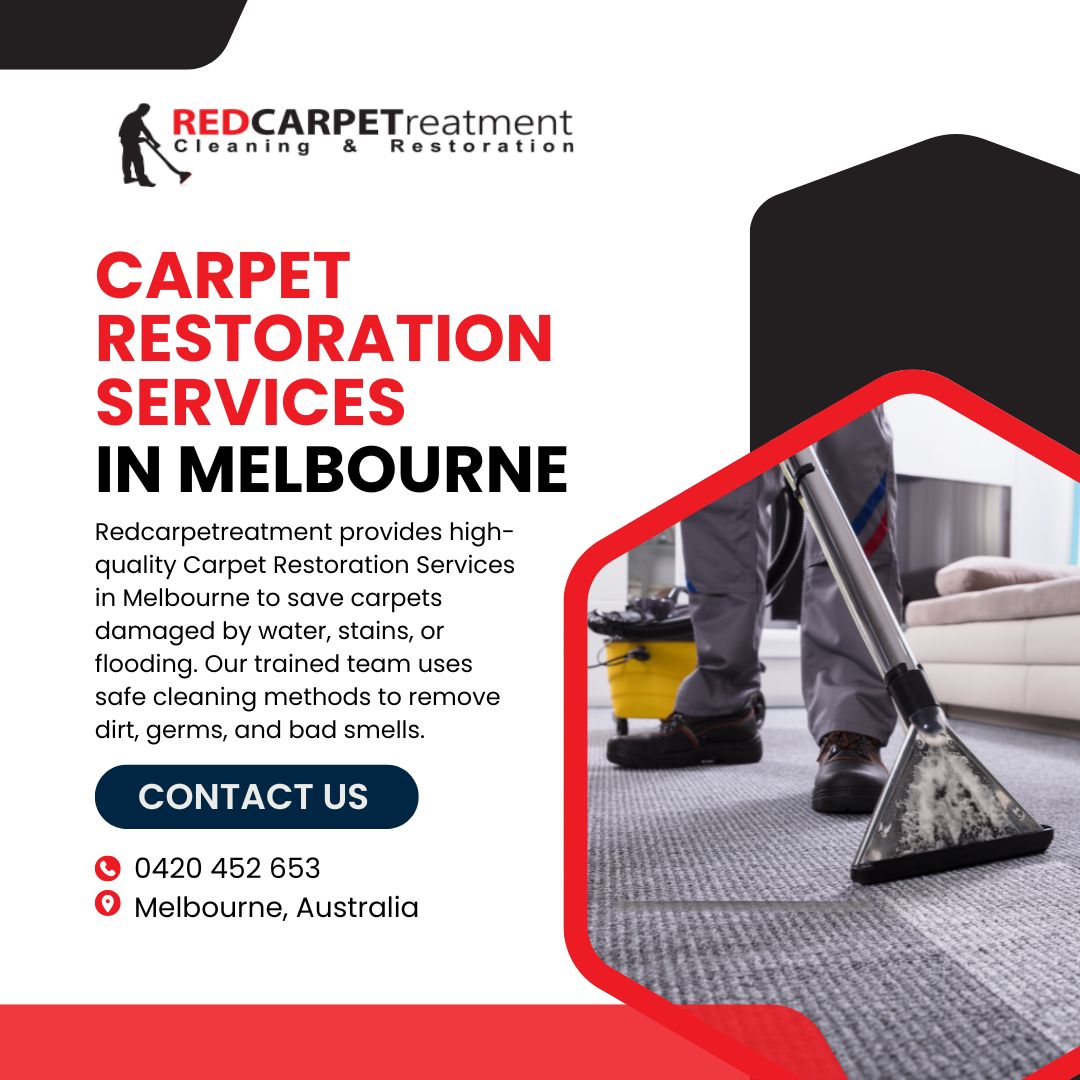 Redcarpetreatment provides high-quality Carpet Restoration Services in Melbourne to save carpets damaged by water, stains, or flooding. Our trained team uses safe cleaning methods to remove dirt, germs, and bad smells. We carefully dry and restore ca...