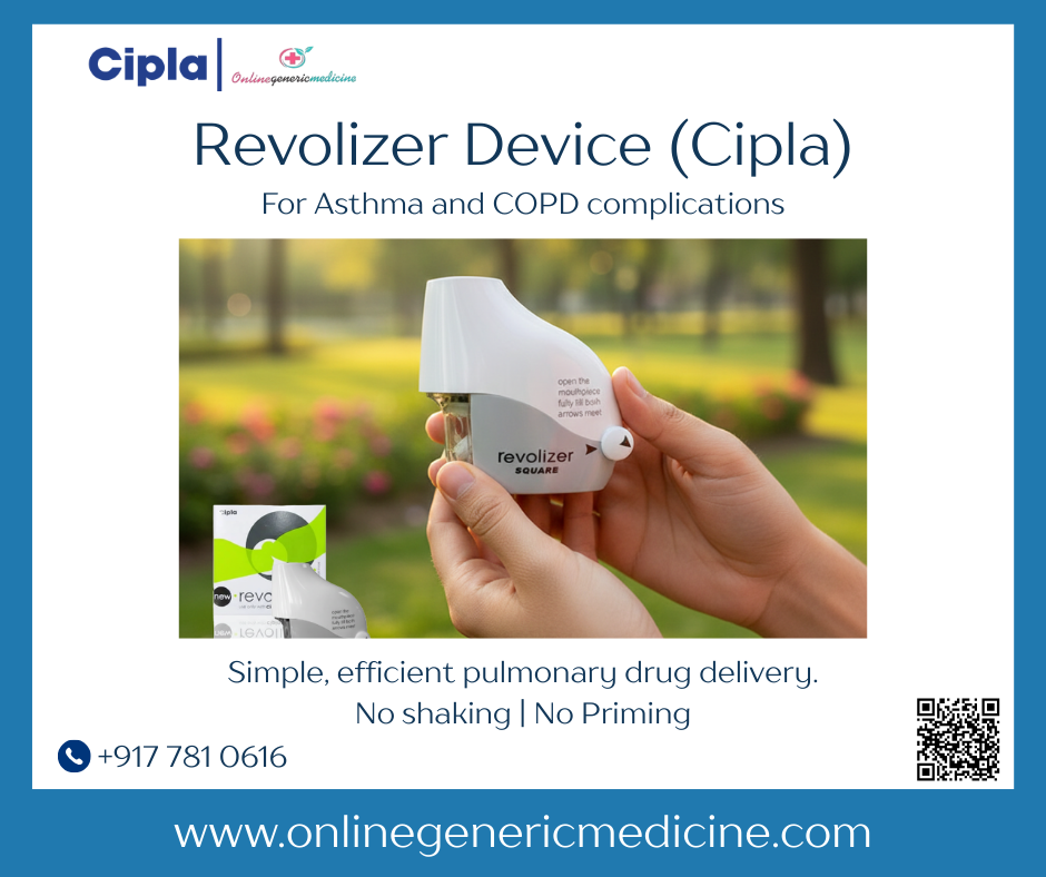 Get***your***Cipla***Revolizer***Device***at***the***at***just $8.00*. A***simple, effective***Revolizer***inhaler***for***your***daily***respiratory***needs. Visit***now***at***onlinegenericmedicine.com