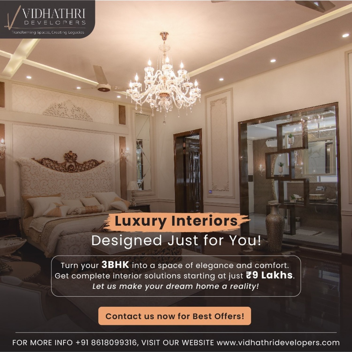 Make your spacetruly yours with Vidhathri Developers – one of Bangalore’sleading interior design firms. We provide turnkey interior solutionsfor homes, offices, and commercial spaces, ensuring high-quality execution andpersonalized design.