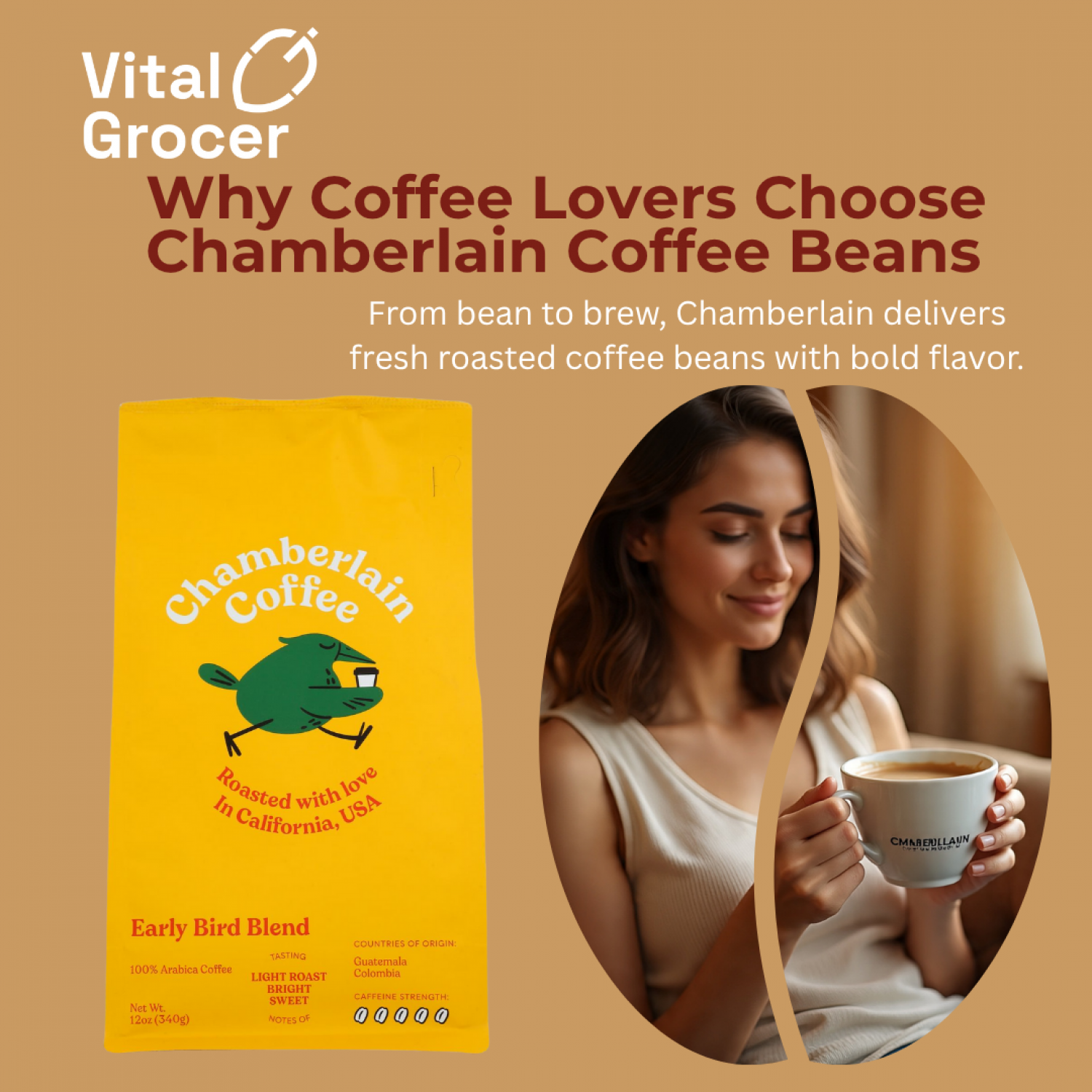 Organic whole bean coffee lovers, meet your new morning favorite – Chamberlain Coffee’s Earlybird Blend, now at Vital Grocer. This medium roast blend is made from 100% USDA-certified organic beans, freshly roasted in small batches to ensure exceptional flavor and aroma.