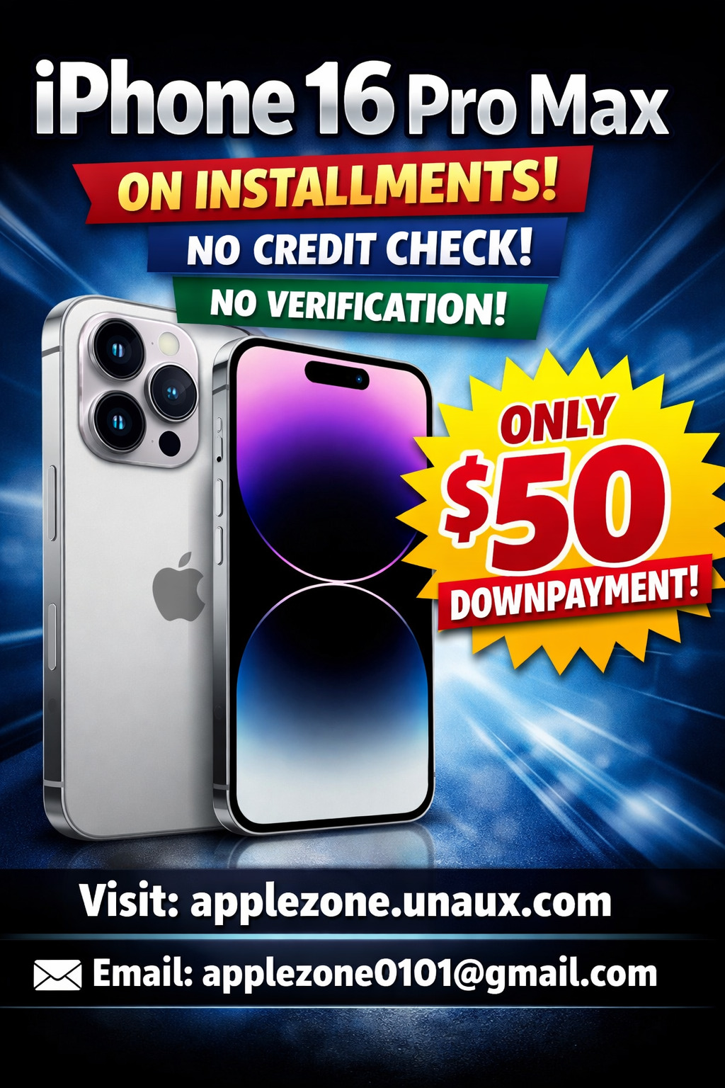 iPhone***16***Pro***Max***on***Installments – No***Credit***Check Get***the***brand***new iPhone***16***Pro***Max on***easy***monthly***installments.No***credit***check, no***verification, and***no***complicated***process. Only $50***down***payment N...