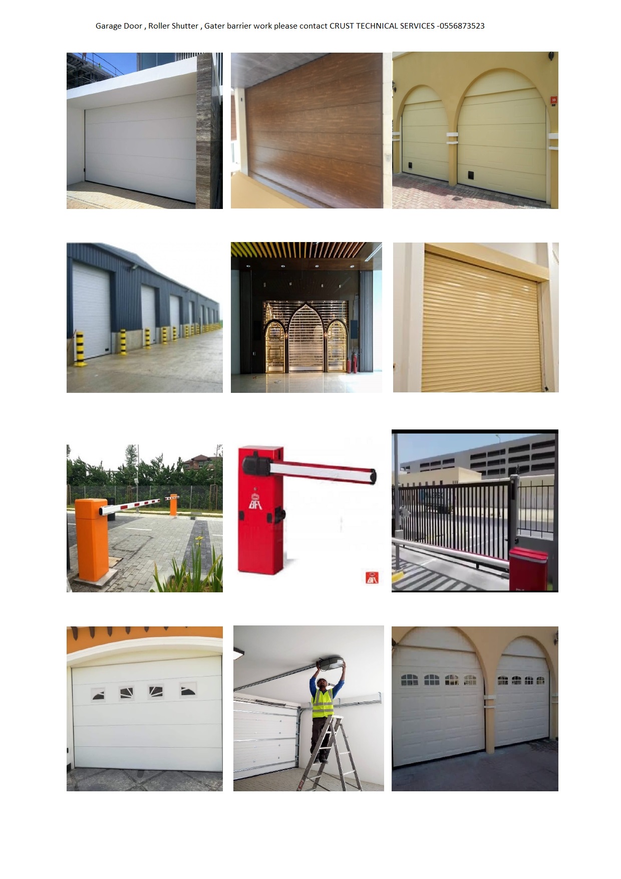 Sectional***Overhead***Garage***Door, Roller***Shutter,Road***Barrier, Side***Louvers / Glass***Doors, Gate, Swing & Sliding***Gates***motorsystem - Supply, Installation & Service***work - Please***Contact: CrustTechnical***Services***Mob: +971***55***68***73523