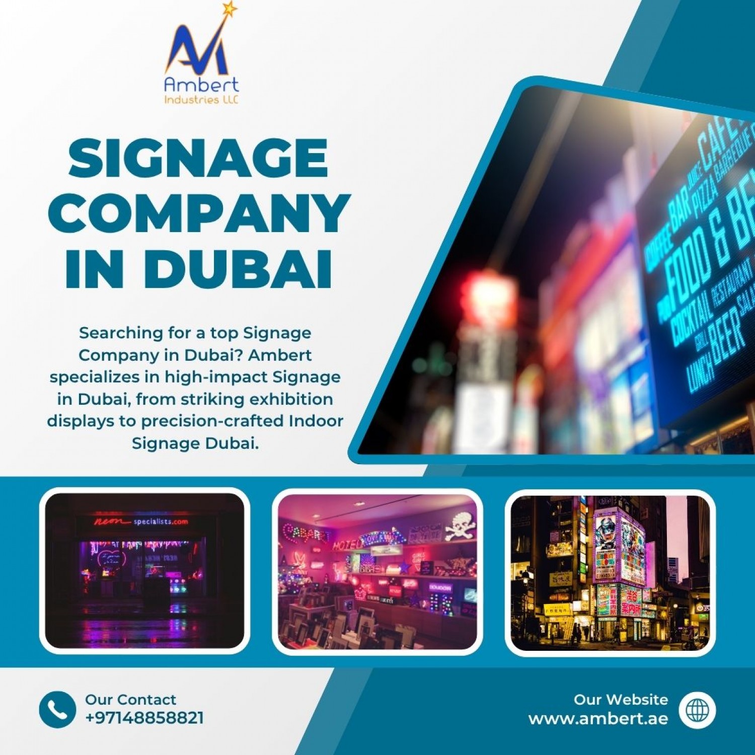 Searching for a top SignageCompany in DubaiAmbert specializesin high-impact Signage in Dubai, fromstriking exhibition displays to precision-crafted IndoorSignage Dubai. Whether youneed attention-grabbing booth designs for the next SignageExhibition in Dubai orsleek corporate signage, we blend innovation with flawless execution.