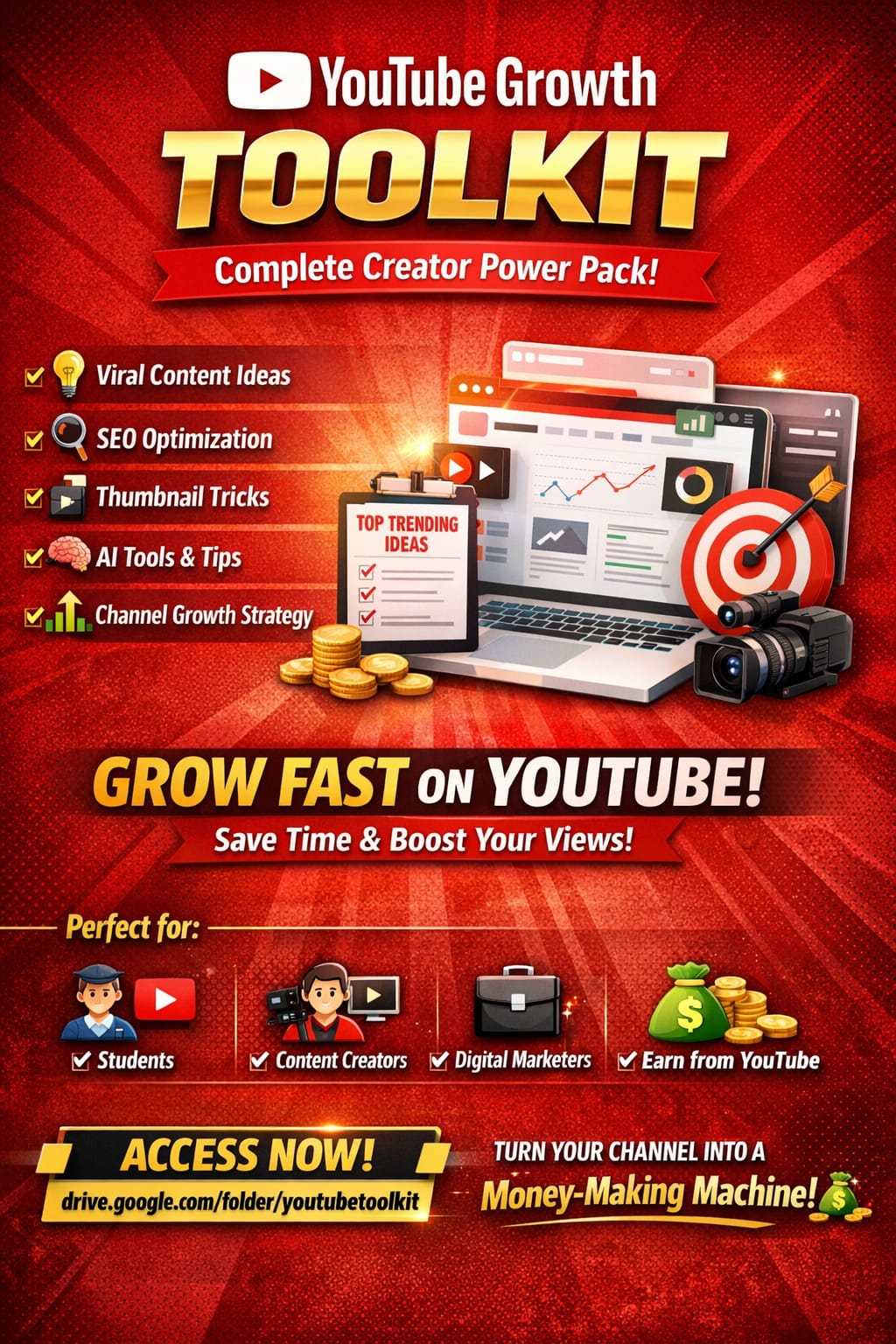 What***You’ll***Get***Inside: Ready-to-use***YouTube***growth***resources Viral***content***ideas & strategies SEO***tools (Tags, Keywords, Optimization) Thumbnail & Title***Optimization***Tricks AI-based***Content***Creation***Support Step-by-step**...